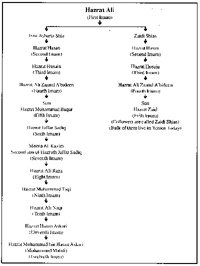 Going back to Imam Ja’far Sadiq a majority of Shias believed that his second son Musa-Al-Kazim succeeded him to imamate instead of first son Ismael. These Shias forming the majority followed up to 12th Imam Mohammad Bin Hasan Askari who according to them went into concealment to come back to earth one day as Imam Mehdi. Born in 260 AH, he is, according to them, still alive. He was five years old when imamat was transferred to him after his father Imam Hasan Askari’s demise by the divine decree. He went into hiding due to danger to his life from enemies immediately after assuming imamat. Till 329 AH, he discharged the duties of imamat from the hiding through his naibeen (deputies) and then he went into a long concealment. The year 329 AH is called the year of Ghuyubat-i-Kubra by the Shias of this sect. These Shias forming the biggest of all Shia sects are called ‘Isna Asharia’. Those usually simply referred to as Shias in India are in fact ‘Isna Asharia Shias’.