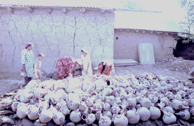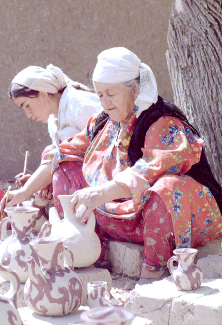 | Zarafo Rakhimova, the old woman making clay pottery |