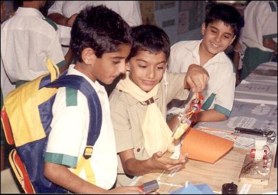 COASTWEEK - - YOUNG SCIENTISTS from the Aga Khan Junior Academy (from left) Nadeen Khalfan, Imran Khalfan and Meekaeel Kurji are seen studying a display during the Aga Khan Junior Academy and Kensec Open Day.