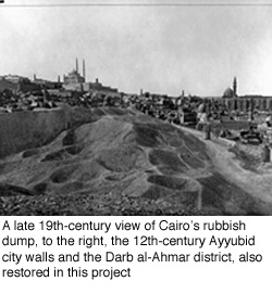 The efforts of the Aga Khan in the area of Cairo have not been limited to Al-Azhar Park. Apart from the restoration of a large section of the Ayyubid Wall, the AKTC has also undertaken extensive renovation and social work in neighbouring Darb al-Ahmar, a poor neighbourhood in the medieval city. This bold experiment in what has been called an “area development project” is typical of the work of AKTC and of the larger Aga Khan Development Network (AKDN) that oversees all aspects of such schemes.