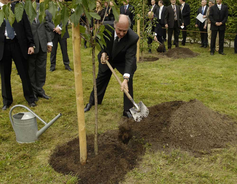 His Highness planting a cherry tree in the park of the Castle Sanssouci in Potsdam, for the “Growing Together” campaign - a part of the official celebrations for the 15th anniversary of German Reunification.