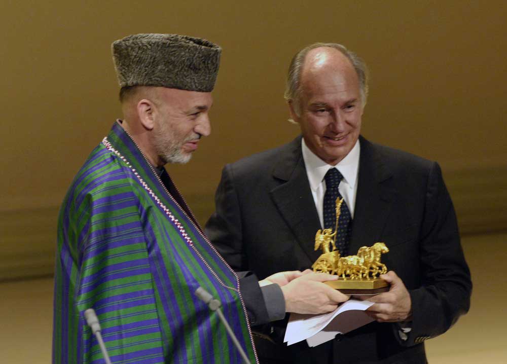 H.E. Hamid Karzai bestows Die Quadriga Award to His Highness.