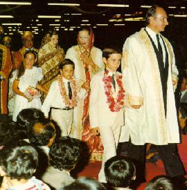 003rahim - Prince Rahim in the arms of Mowlana Hazar Imam with Princess Zahra in the arms of Begum Salimah