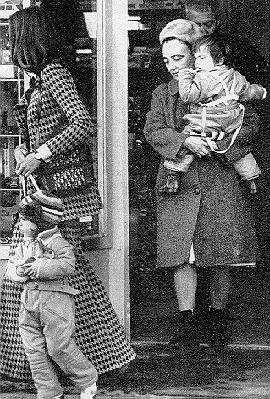 030rahim - Begum Salimah holding Princess Zahra and Prince Rahim in the arms of his nurse, leaving a Saint Moritz toy store where Princess Zahra bought the stuffed toy rabbit she is cradling in her arms